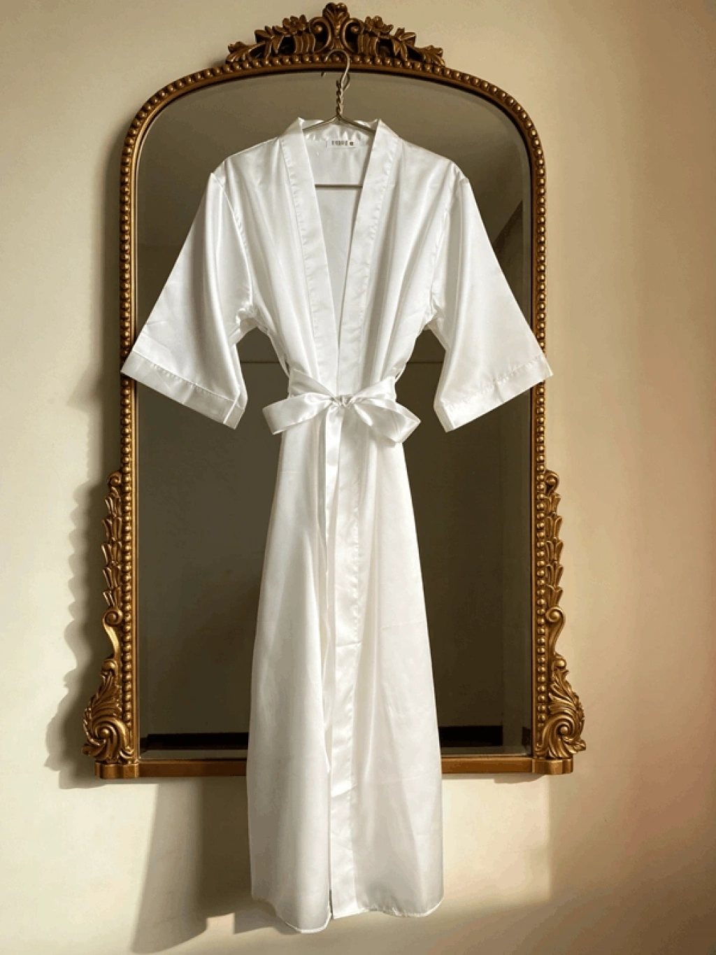 Ekru Fakir Kol Uzun Saten Sabahlık
