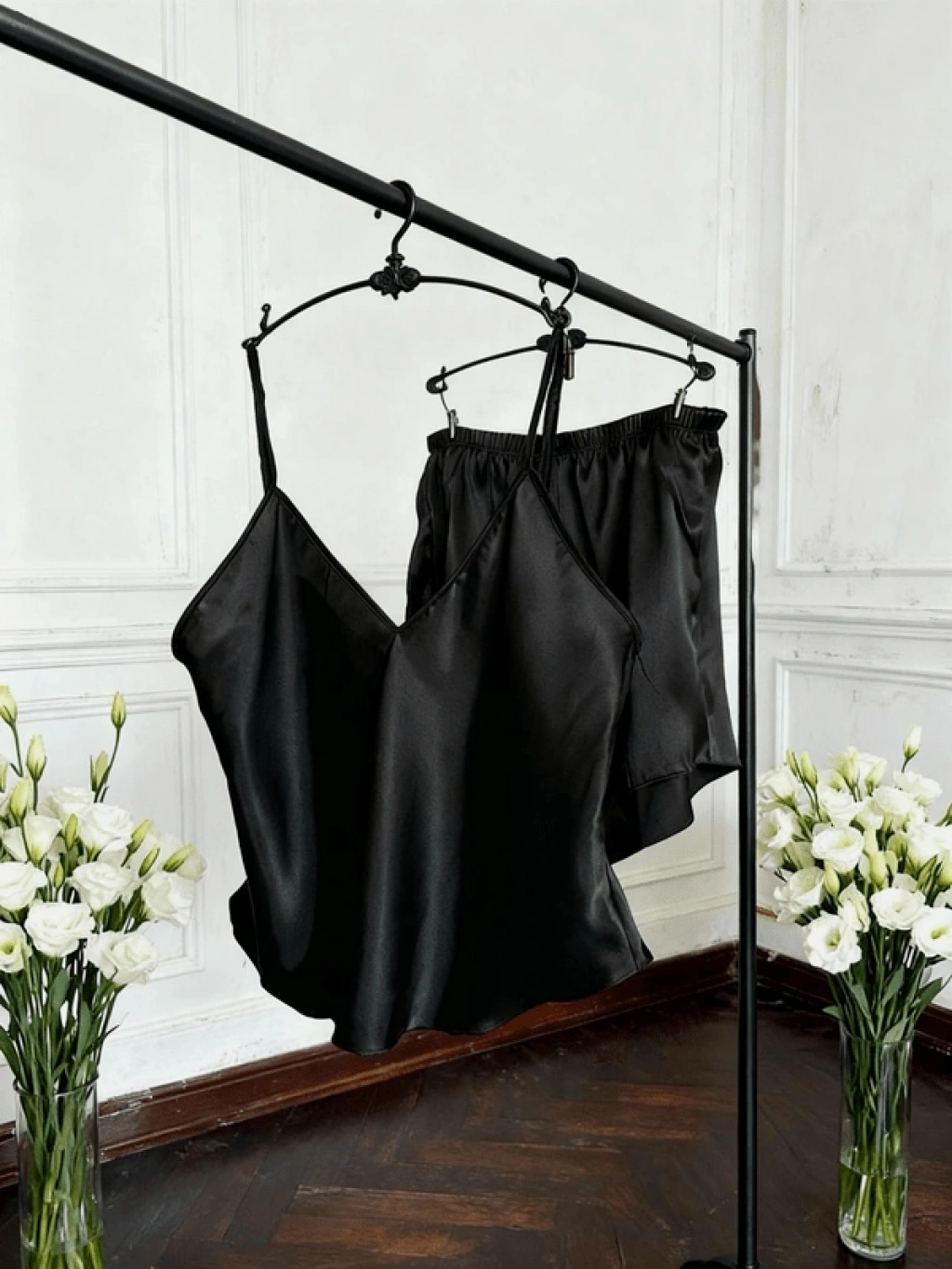 Askılı Saten Şortlu Takım