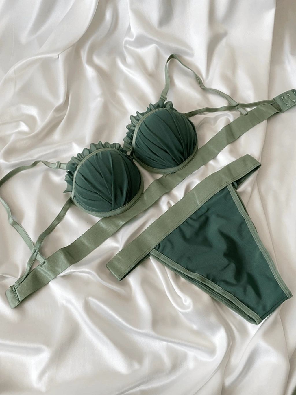 Çağla yeşili rengiyle dikkat çeken bu sütyen takımı, zarafeti ve şıklığı bir arada sunarak vazgeçilmez olacak.