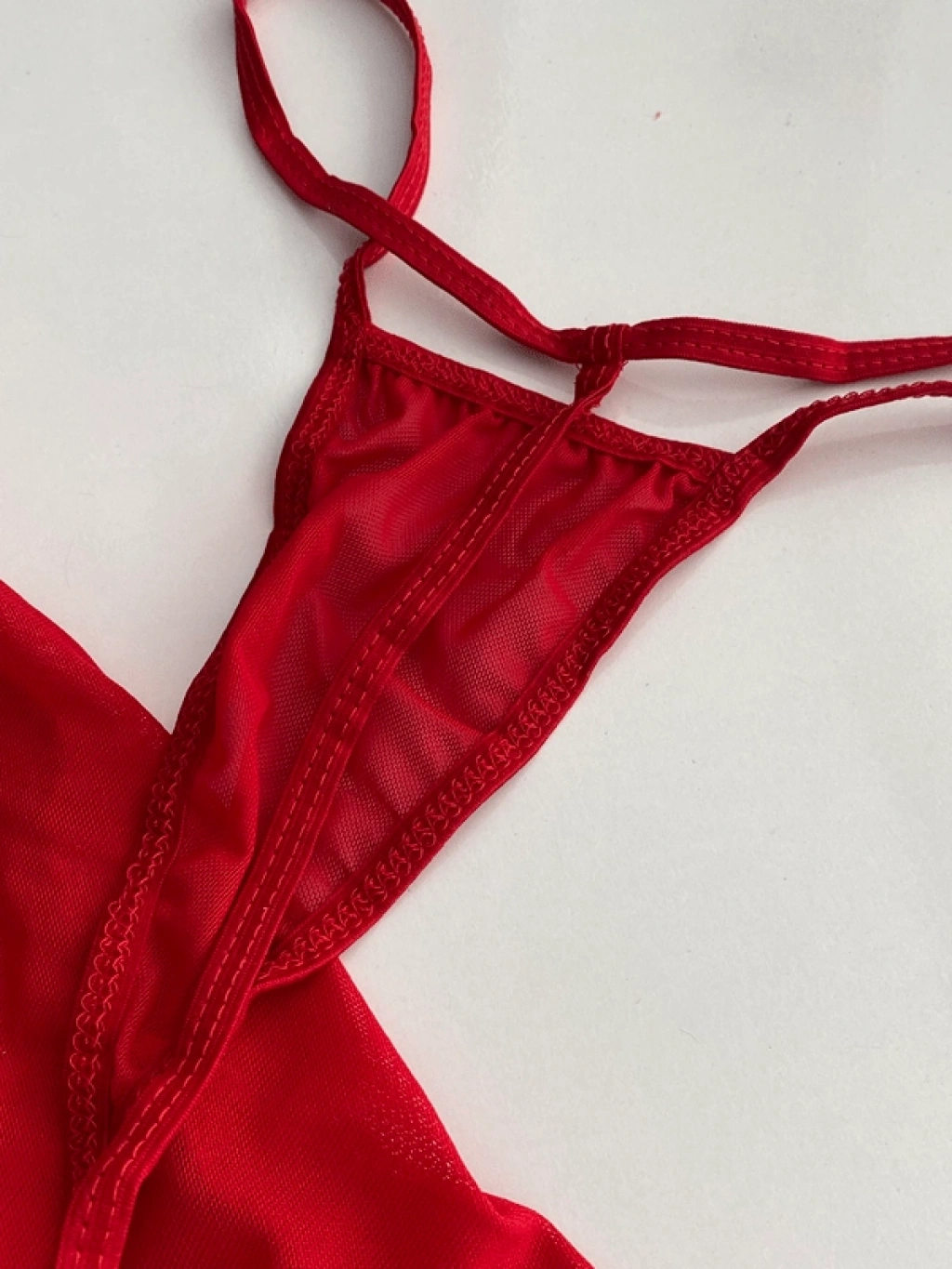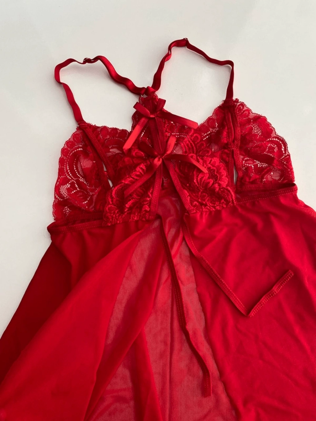 Gece İncisi markasının özel tasarımı olan Kırmızı Özel Bölgesi Açık Tül Gecelik ile kendinizi şık ve çekici hissedin. Bu transparan tül gecelik, kırmızı rengiyle göz alıcı bir görünüm sunar.