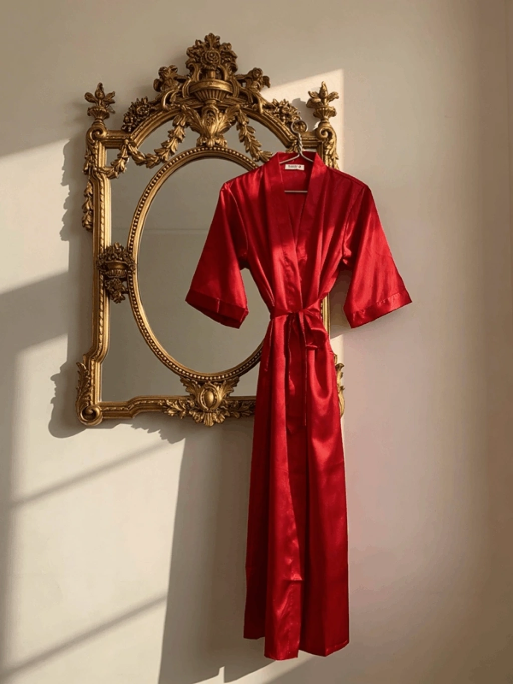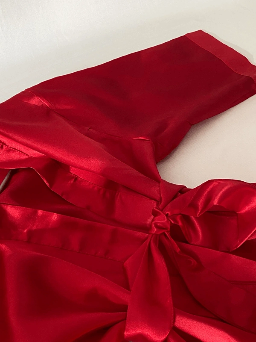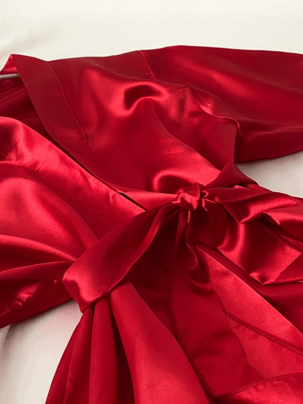 Kırmızı Fakir Kol Uzun Saten Sabahlık