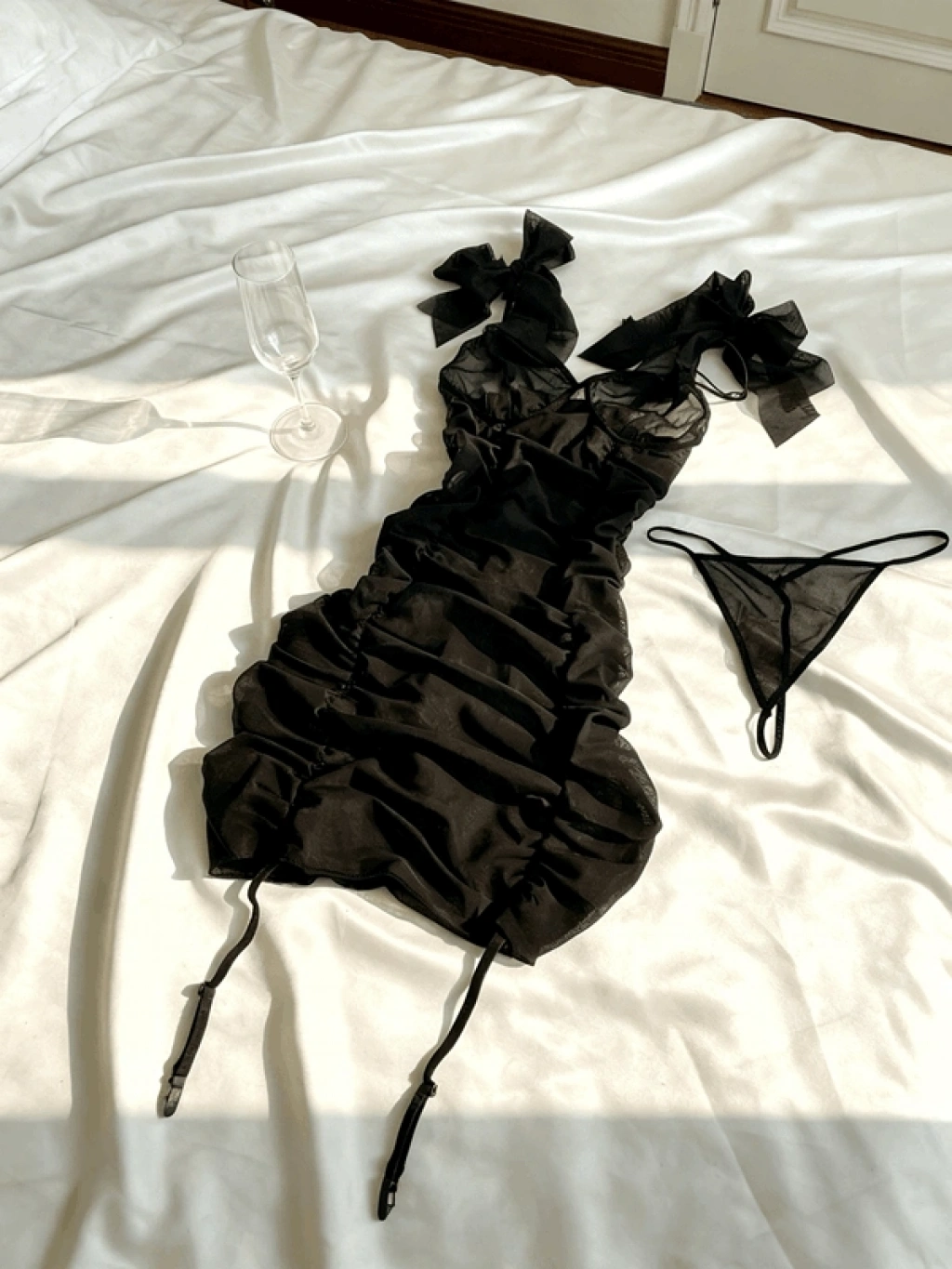 Şık tasarımı ve detayları ile dikkat çeken Siyah Kurdela Detaylı Tül Drape Gecelik, özel anlarınıza zarif bir dokunuş katmak için ideal bir seçimdir.