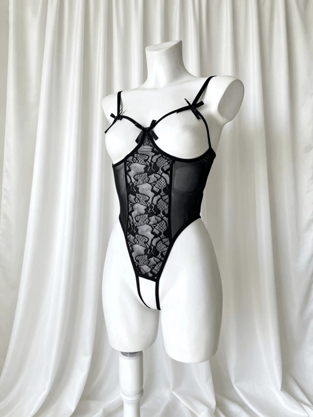 Bu bodysuit, dantel detayları ve özel bölgesi açık tasarımıyla fanteziyi ve şıklığı bir arada sunar.